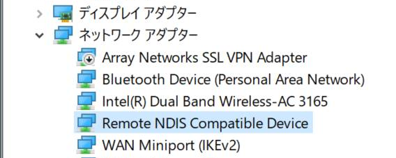 このように「Remote NDIS Compatible Device」が追加された場合はインストール成功です。