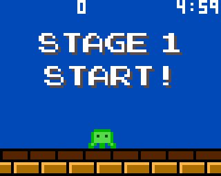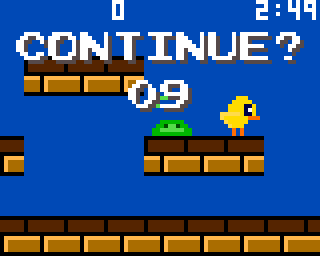 | 10カウント以内にボタンを押すとコンティニューできる。5分以内に一番右端に行くとステージクリア。 | |