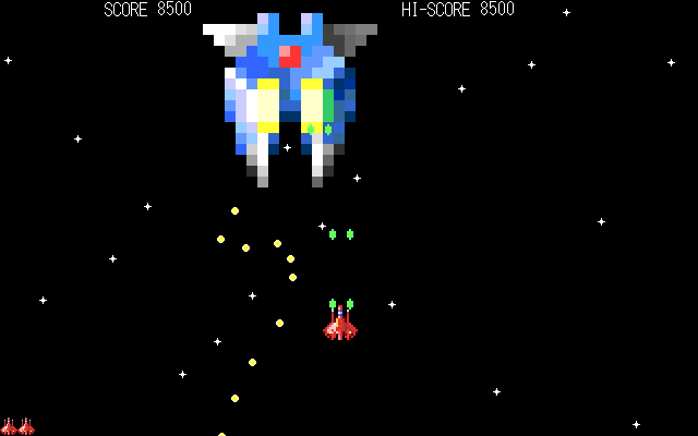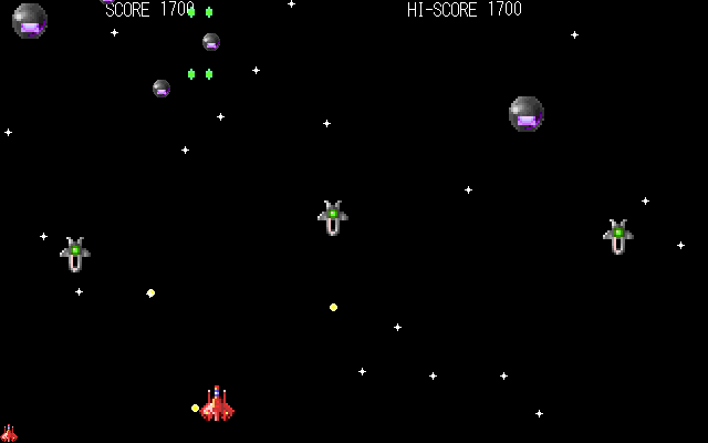 1995年頃石川県にある専門学校KISTの卒業研究でMS-DOS版S.T.G.を作成して提出しました。すべてアセンブリ言語(マシン語)で開発。当時の私はBASICとアセンブリ言語しか使えなかった(笑)あとAd Libの操作方法が分からなかったので音は出ません。対応機種はPC/AT互換機とPC-9821。